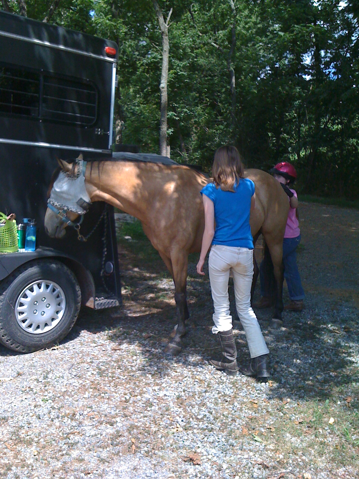 It is not the most glamorious part of riding horses, but Anna Kate does a fine job of caring for High Hope, and it shows!
