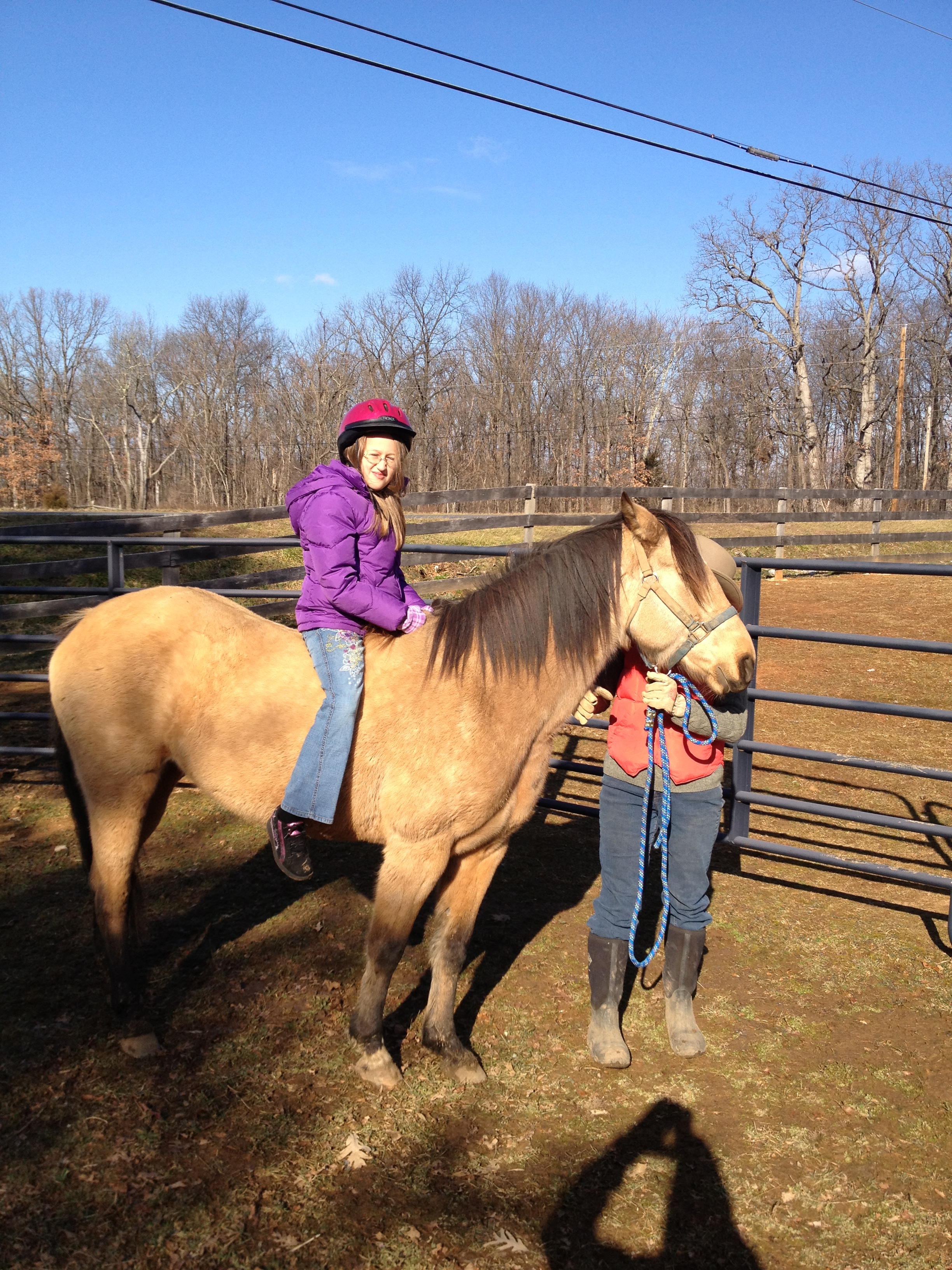 Last Saturday was the prize day. Arriving at 10 a.m. to a bleak-looking farm (winter is not the time for a pretty farm) and extra-fuzzy horses, the girls were well dressed for the cold morning and biting wind. At least for an hour!