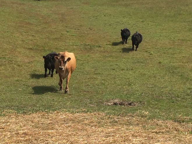 The steers followed her all afternoon.