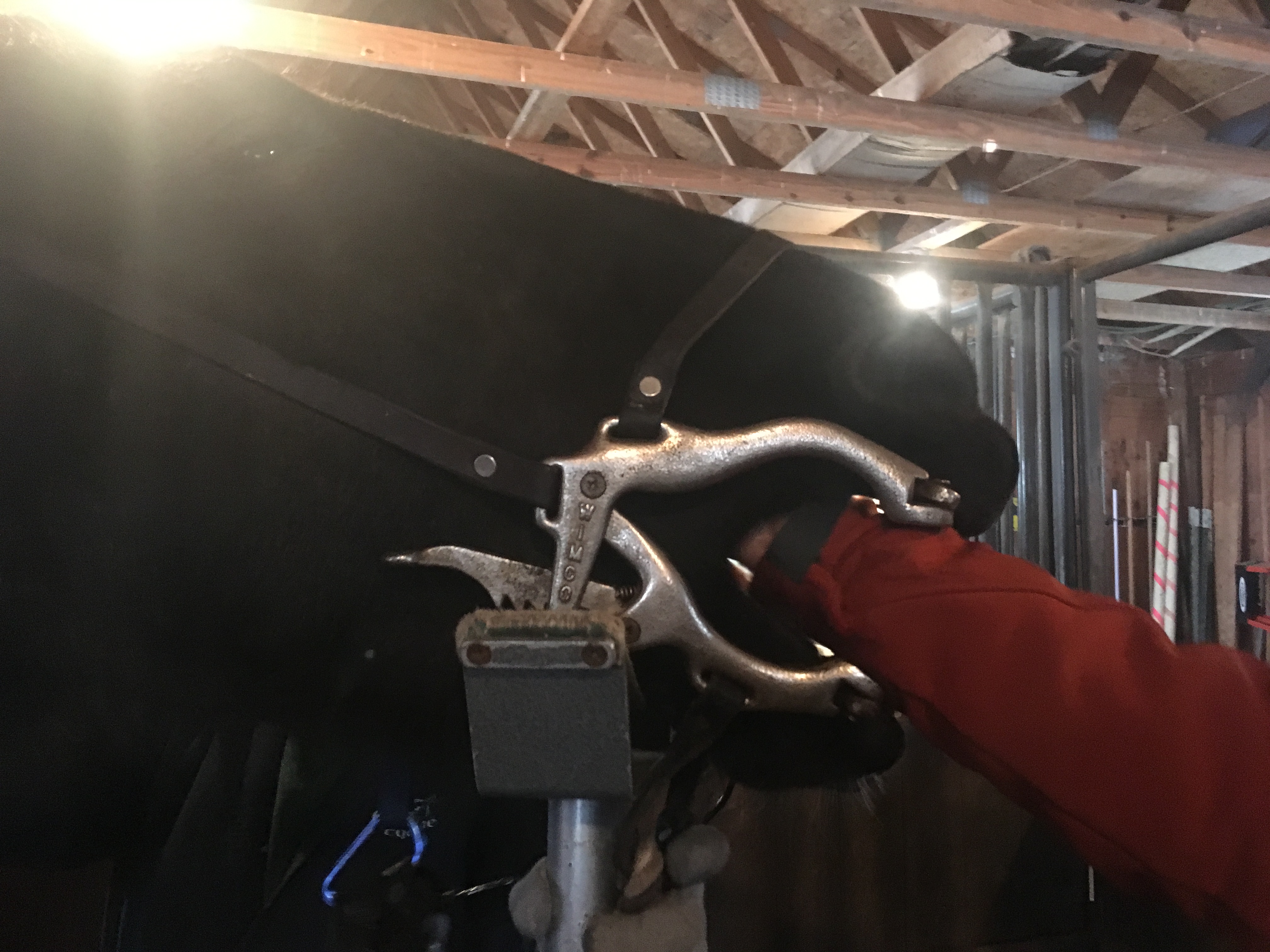 After the points had been ground down, tarter was removed from his canines. This was the last thing to do. Duke’s dental appointment was over. Good, good horse. Great vet and assistant.