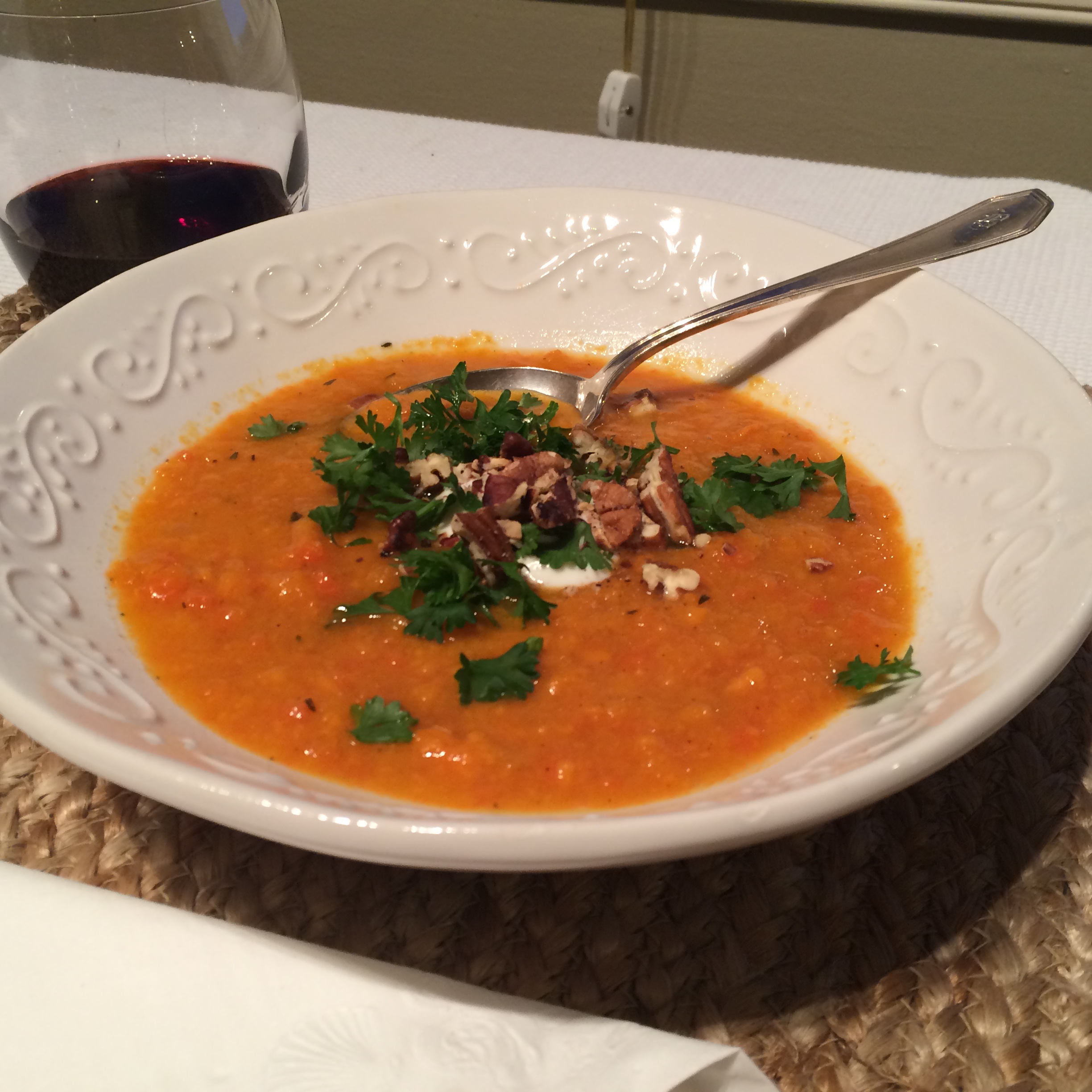 Tip Dry roasted pecans additionally make a nice garnish. Also, be overly generous with the chopped fresh parsley. It is full of Vitamin C, and is great for the tummy. 🙂