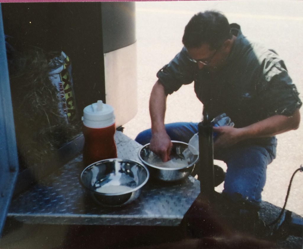 The borrowed bumper-pull horse trailer was filled with two stainless steel bowls for mixing milk replacer powder mix, two little halters & lead lines, a few brushes and $824 in cash. We were on the road. First stop was Mom’s farm in Clifton Forge, VA. She was all ready to join the excitement of a road trip for horses. Her farm hand would keep the place for a night. She sat in front with Bill, keeping track of towns, mileage/times, and fueling stops. Helen and I settled in the back seat of our comfortable GMC Suburban and enjoyed the scenery.