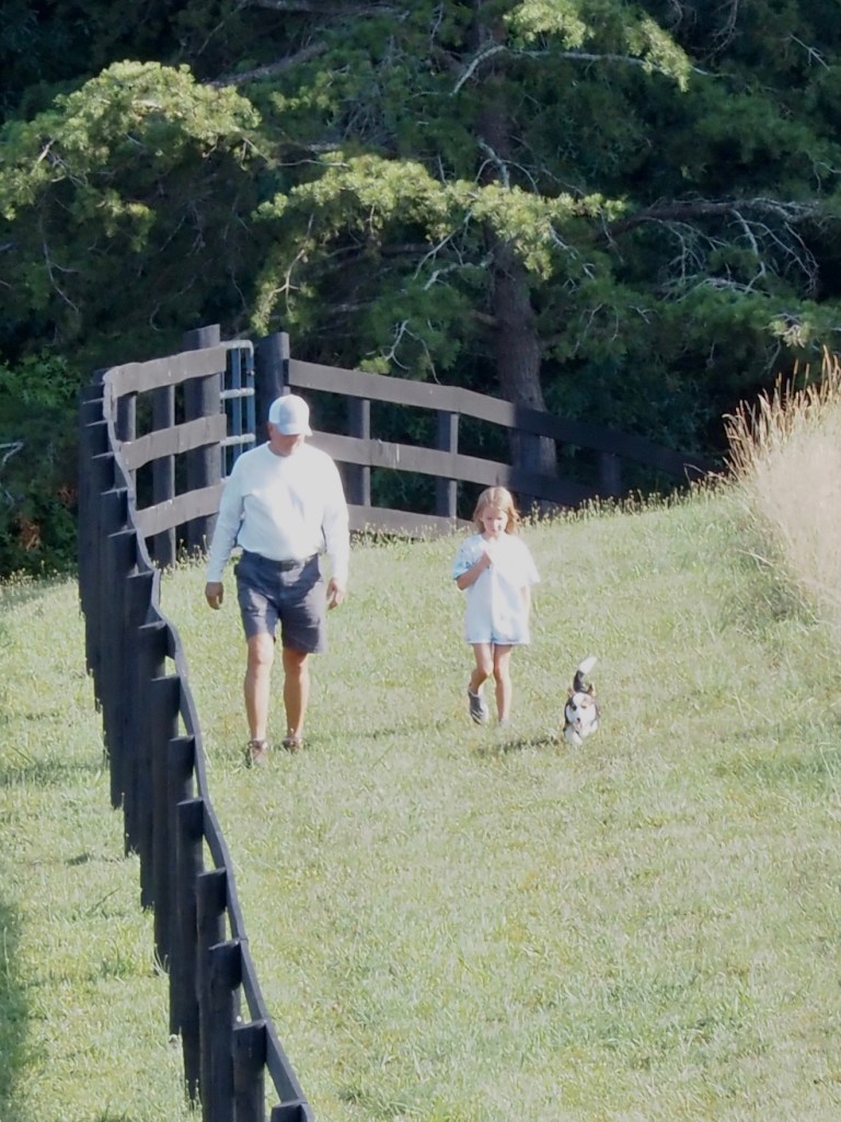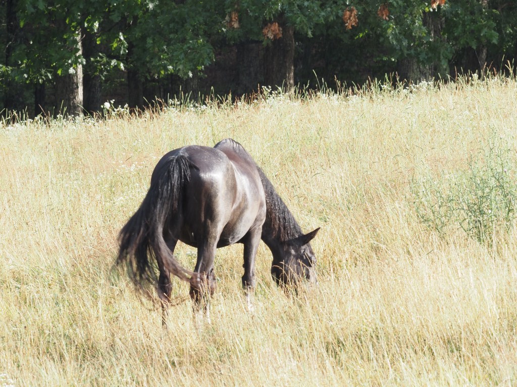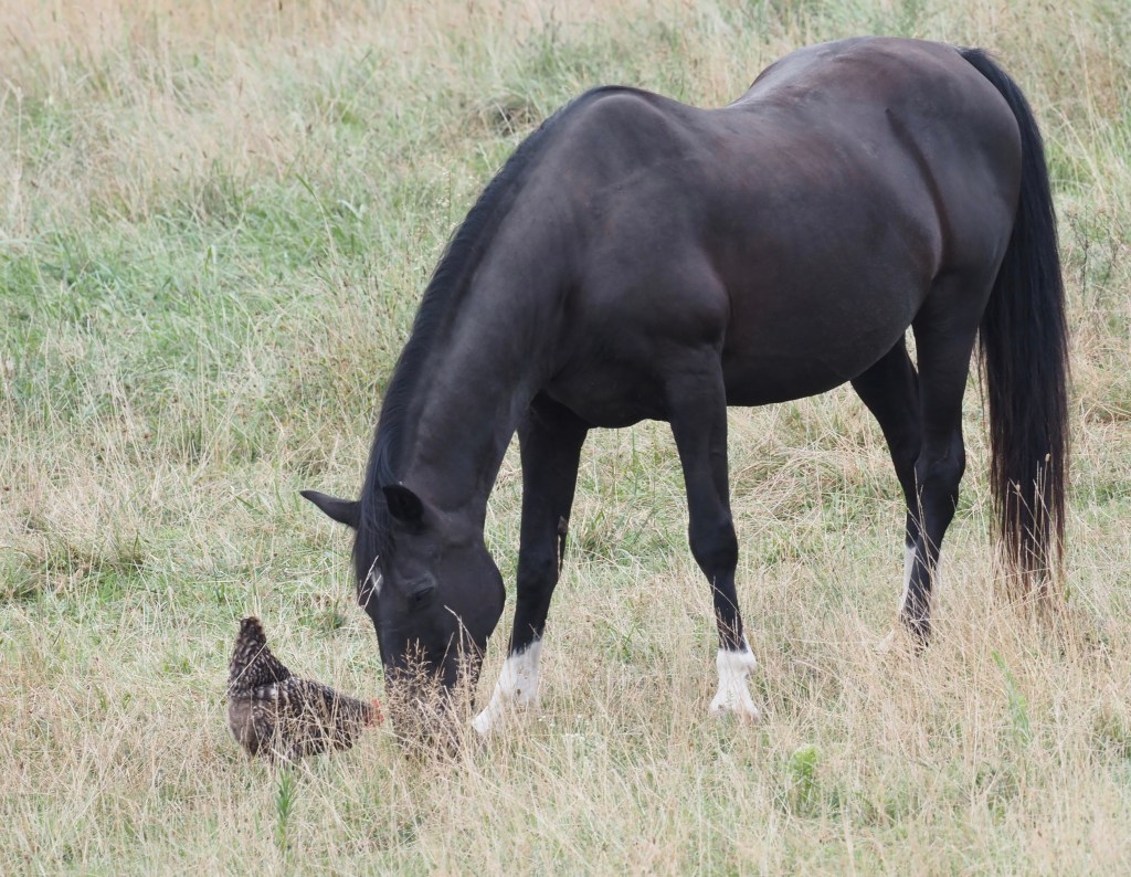 Out here on our little farm, we have worked to keep the fields bush-hogged throughout the summers. This year, however, we managed them a bit differently. We decided to mow paths around the edges of the fields inside the fence rows. It created pretty paths for walking around the property. Everything likes to walk on paths, i.e. horses, dogs, cats and folks! Out in the field it provided great cover for birds to raise their young. We have watched more beautiful meadowlarks than ever before. They like cover, and build their nests in long grasses on the ground. While out walking one late afternoon after feeding, HoneyPie flushed up a turkey hen and her bunch of tiny chicks. They scurried to hide in the woods, and mother gathered them up quickly after we passed by. Another benefit is the Timothy grass. It was able to go to seed, which will help the pasture next season.