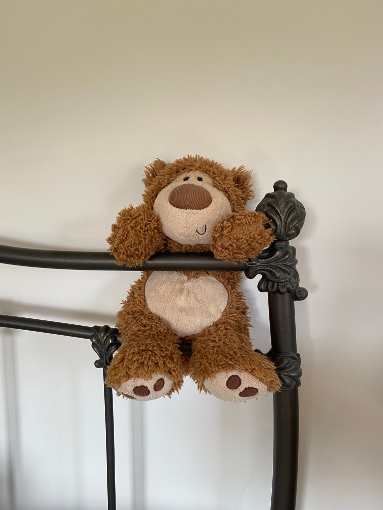 The critical care nurses on the first night at the hospital were attentive and kind. It was early the next morning when I awoke, and to my hearts delight and overwhelming joy, I saw one of my dearest older sisters, Sarah, coming into the room. She looked absolutely beautiful. Our mom had passed away a couple years back and when I saw my sister a grapefruit-size lump filled my throat and I knew all would be well. In her arms was the most adorable stuffed bear with the happiest grin on his face, with a big heart-shaped tummy and flowers, I think.