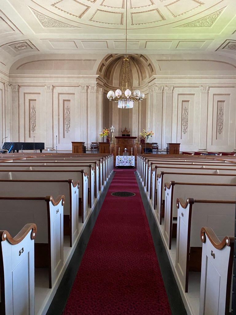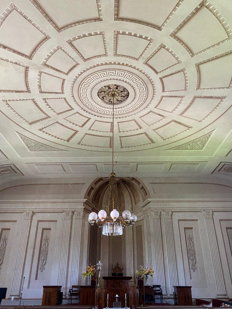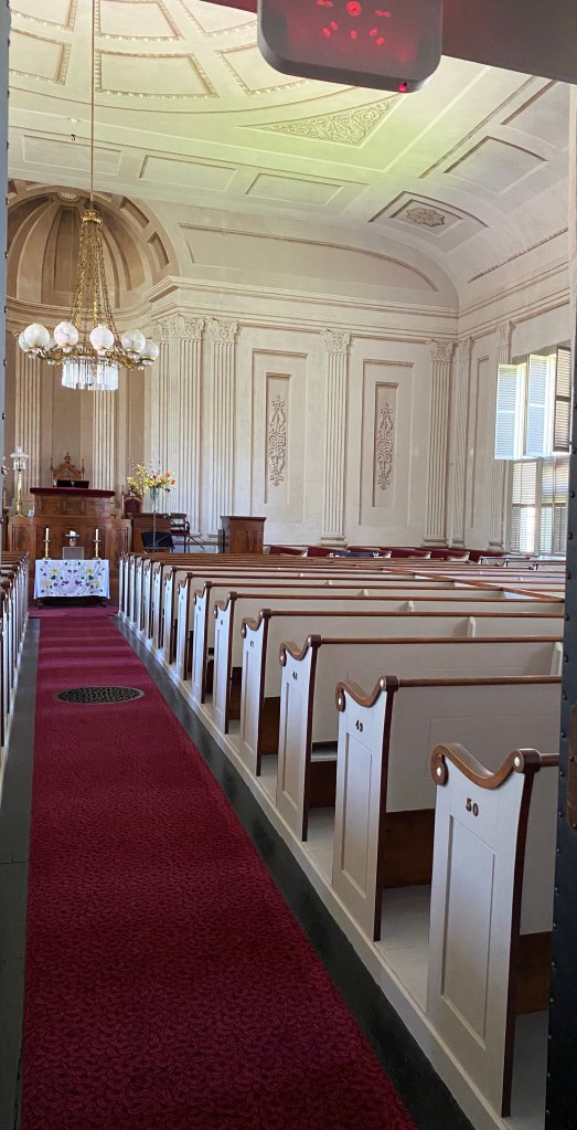 One place was the Universalist Meeting House of Provincetown, MA. Said to be one of only five entirely trompe l’oeil interiors in the country. Painted by Carl Wendte, a young artist from Hannover, Germany, around 1850. It is a fine exhibit of this interesting art form.