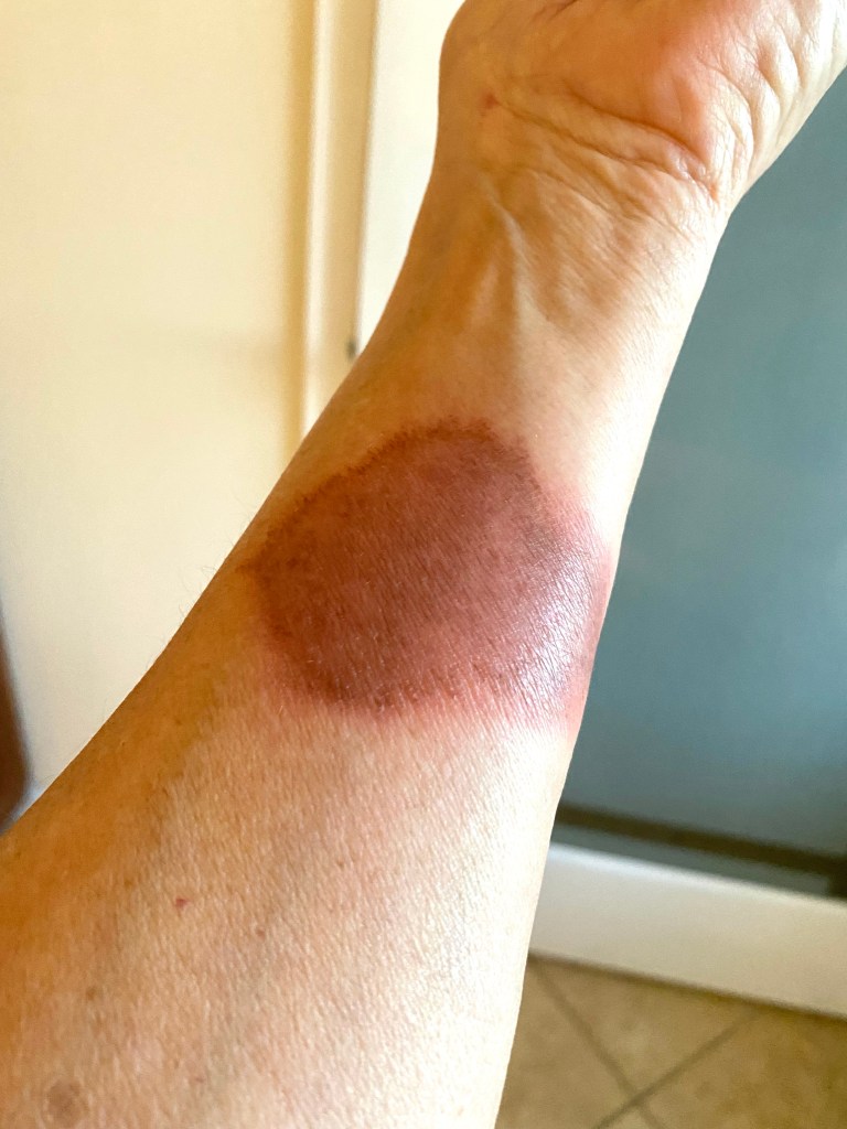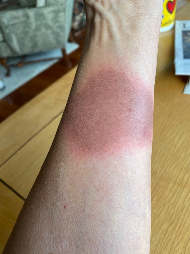 It took a full two weeks to heal. And here is the best indication of a wound healing—it starts to itch. It is now only a pink patch on my arm. Because we are in winter, I am not concerned for it getting too much sun. However, if it were summer, I would be very careful about the amount of sun this new tender skin could get.