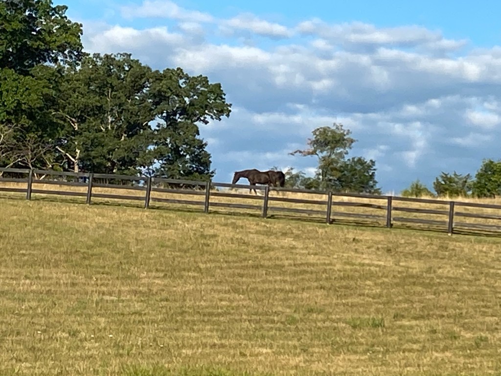 He disappears then reappears in the field as if by magic. Our two black miniature horses are the same way, but they do not cover as much ground the way Duke does. They tend to stay in much the same grazing space.