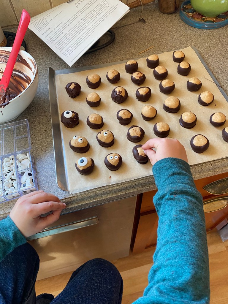 I sent the pumpkin and a plate of our yummy, mummy buck eye candies back home when his parents picked him up.