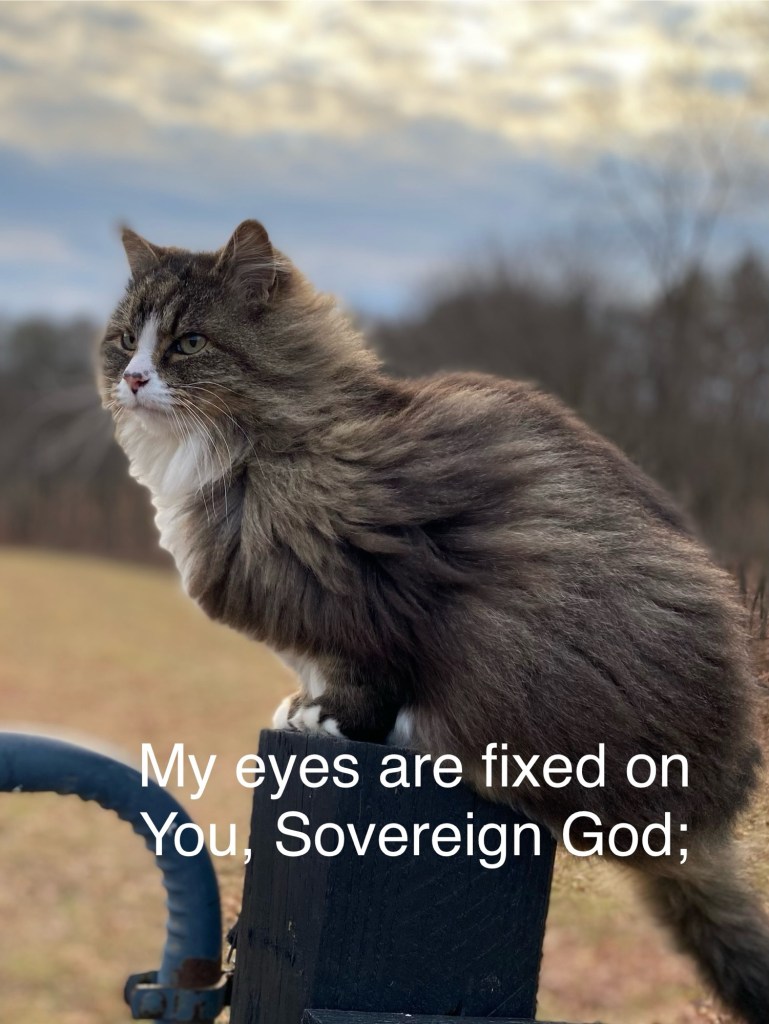 Boo-boo.A glorious morning.Where does your hope lie?Do you keep a garden?All my sons/grandchildren love fishing. Where do you find your rest?All creatures great and small…The Lord causes rain to fall on the earth.Ain’t it so?The Golden Rule.