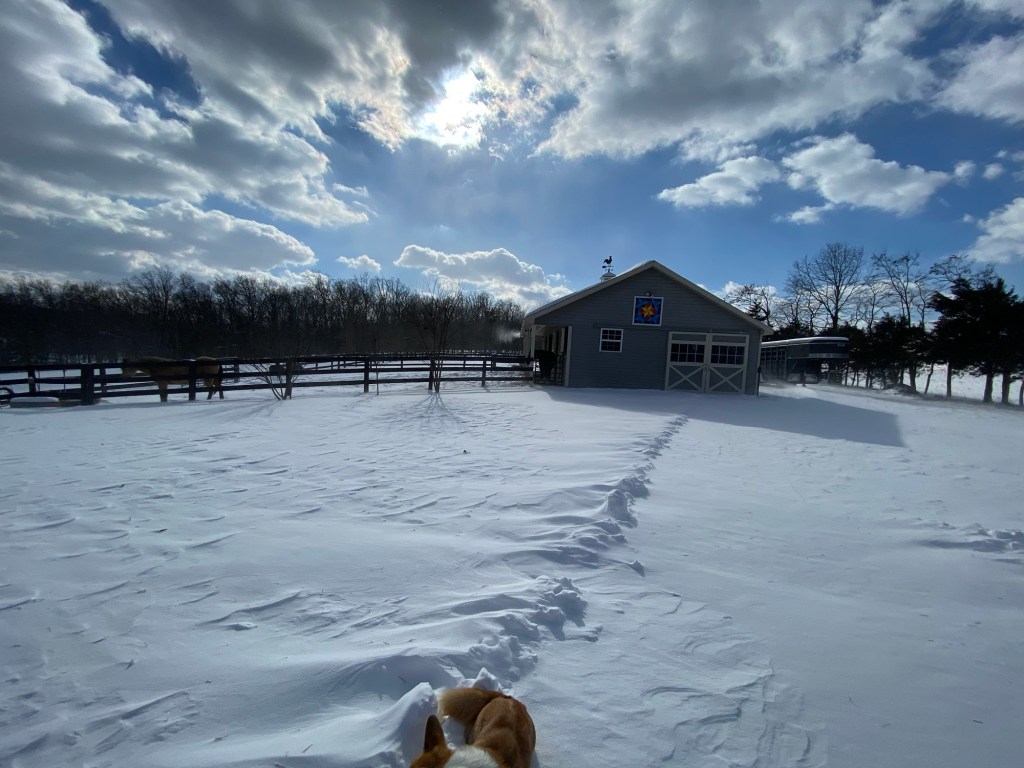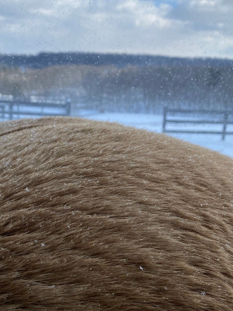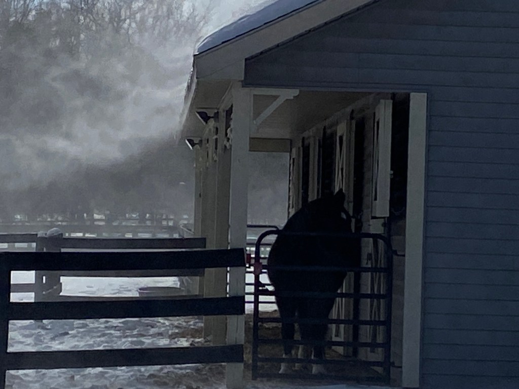 This week has been snowing with bitter winds blowing for several days. The horses actually came in before I got out. Their whinnies told me to hurry up!