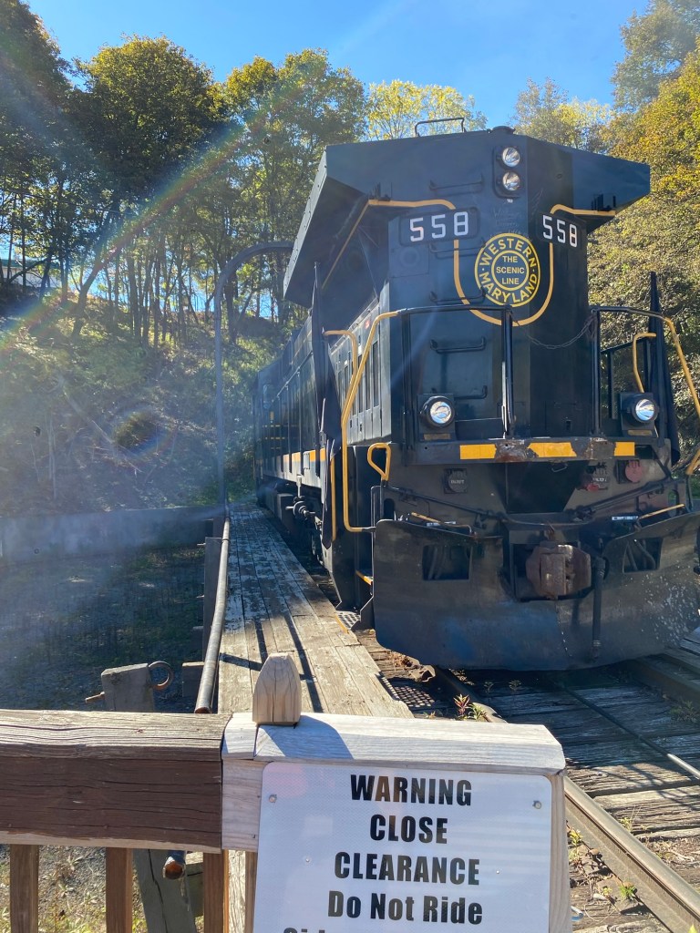 #558, that is its name. The number/name of the huge diesel engine that pulled our delightful scenic train cars steadily through the gloriously fall-colored Alleghany Mountains last week.
