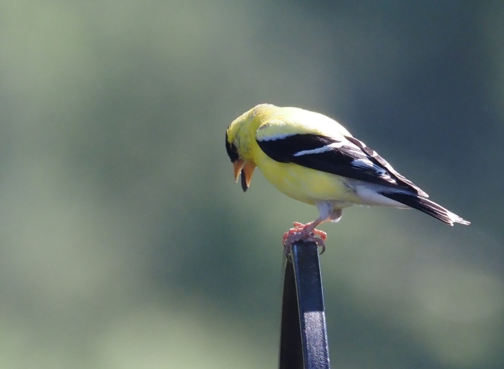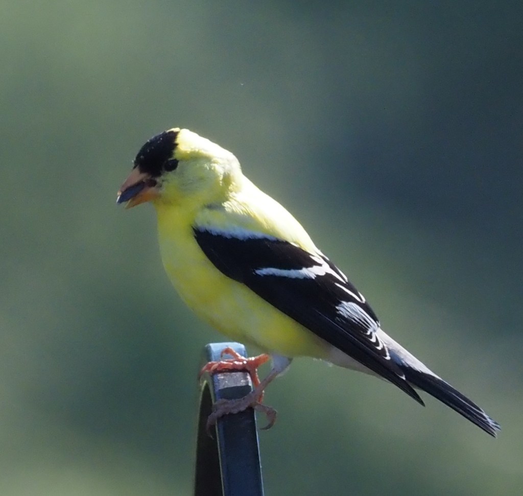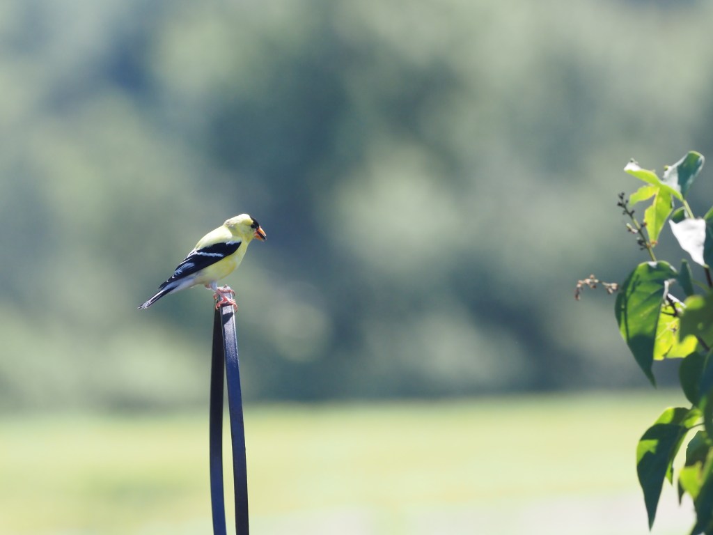 American Goldfinches, Carduelis tristis, are often called Wild Canaries. They are a very loved tiny bird that twitters upon taking flight. They fly an undulated flight pattern.